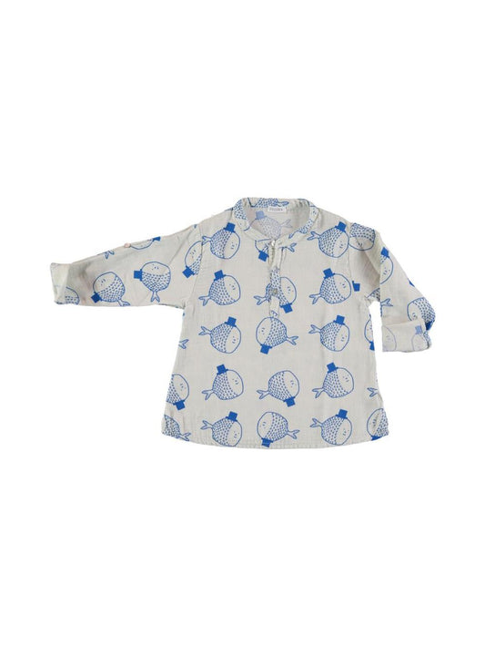 MAO SHIRT WITH FISH PRINT AND WHITE HATS