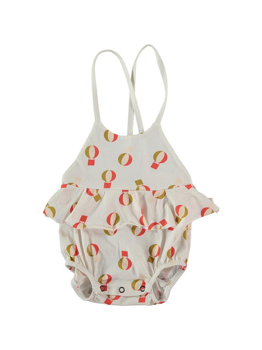 WHITE BALLOON PRINTED RUFFLED BODYSUIT