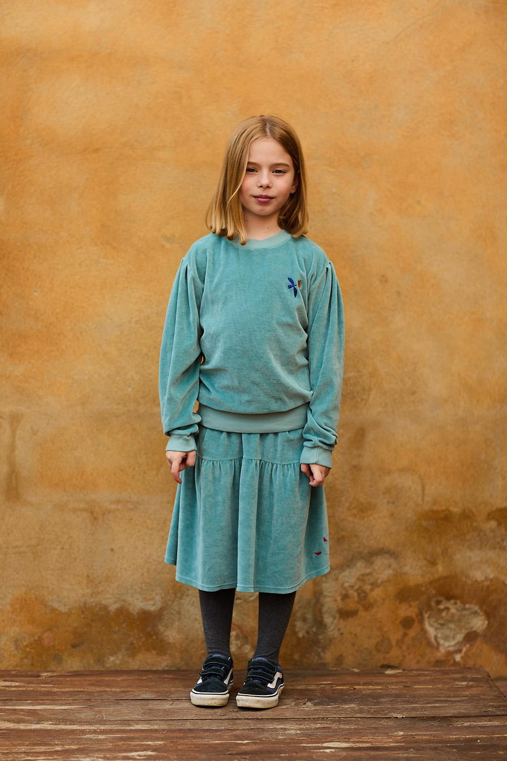 FALDA TERCIOPELO AZUL BORDADO ZAPATOS BAILARINES